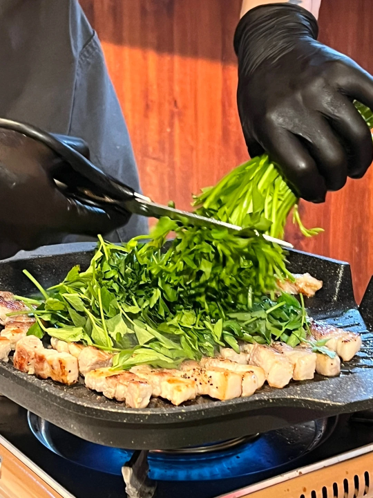 Everyone loves a good K-BBQ, but if you’re looking to add a special twist, Pul Pig is the place to go! (A bite of water parsley before the pork—just to ease the guilt a little!)